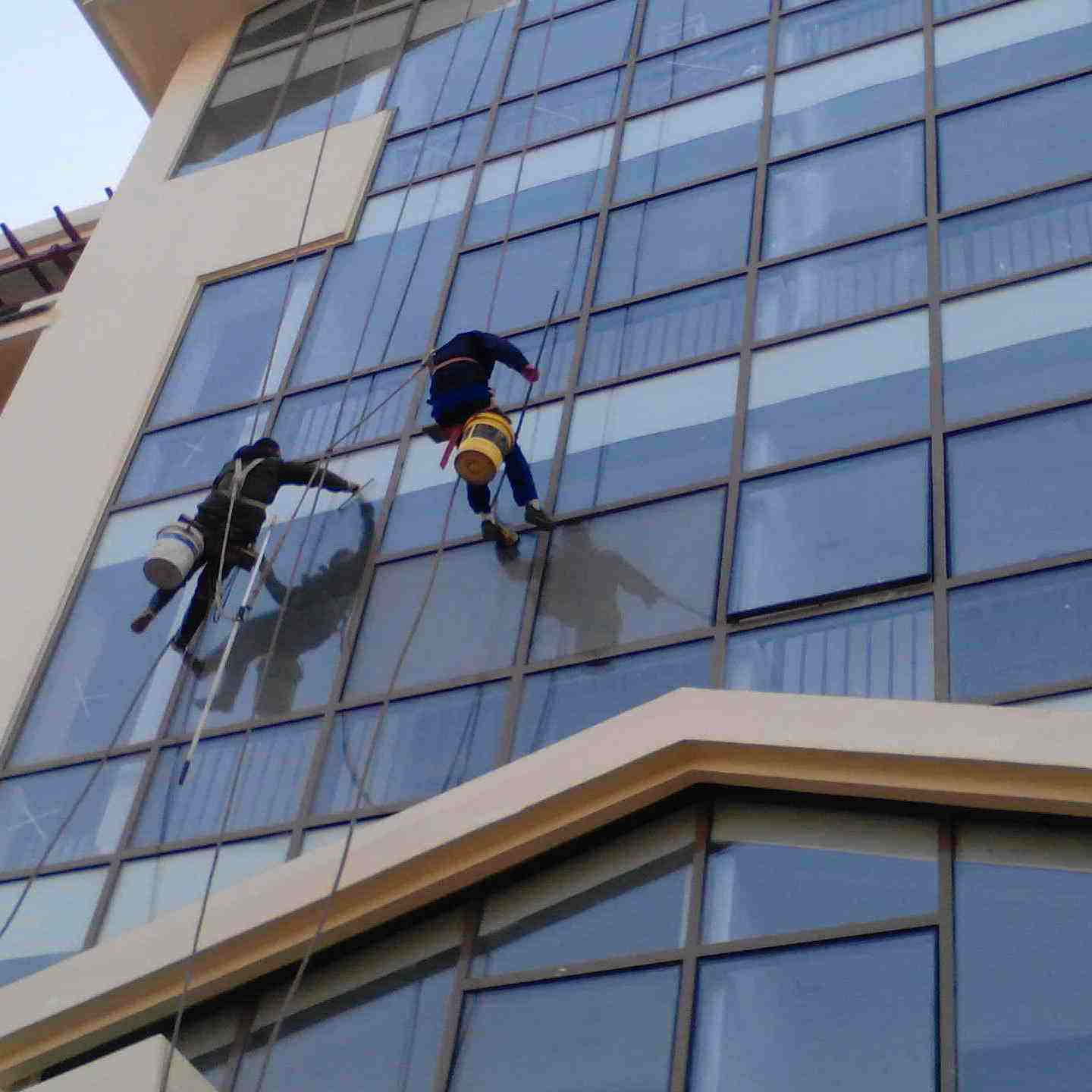 當(dāng)代大廈多為高層建筑,外墻面多用各種材質(zhì)的面磚裝飾。為保持大廈外表的清潔、美觀,應(yīng)定期對(duì)外墻進(jìn)行清洗。杭州高層大廈玻璃幕墻和玻璃窗的外面,容易附著灰塵,需要經(jīng)常擦拭,以保持大廈美潔和室內(nèi)明亮。清洗大廈外墻和玻璃的外面,需要經(jīng)常擦拭,以保持大廈美潔和室內(nèi)明亮。杭州清洗大廈外墻和玻璃的外面,需要在室外和高空中作業(yè),必須使用高空吊籃、吊板、升降臺(tái)等運(yùn)載工具,作業(yè)難度大,危險(xiǎn)性大。操作人員須經(jīng)嚴(yán)格體檢,嚴(yán)格培訓(xùn),嚴(yán)格遵守操作規(guī)范和安全規(guī)范。